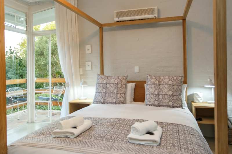 A comfortable 20m2 room with a large double bed. The unit has a private bathroom with a shower and a furnished patio and a private entrance. It is equipped with a microwave, refrigerator and tea-and-coffee making facilities.